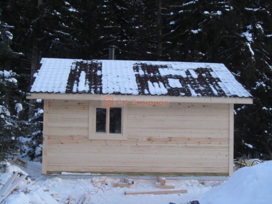 Такая одноэтажная баня 6х6 может быть построена из бруса. Ориентировочный срок строительства 21 дней.