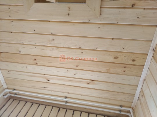 Потолки, стены вансардного каркасного этажа ( если он есть ) обшиваются сухой вагонкой.
