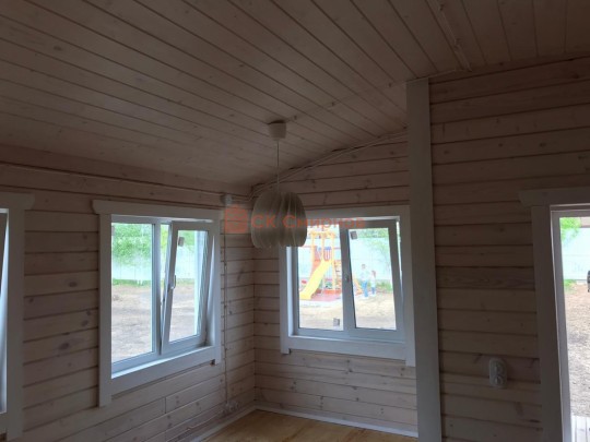 Потолки, стены вансардного каркасного этажа ( если он есть ) обшиваются сухой вагонкой.