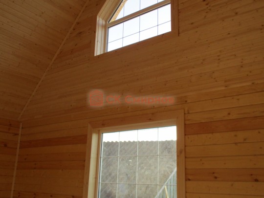 Потолки, стены вансардного каркасного этажа ( если он есть ) обшиваются сухой вагонкой.