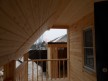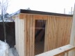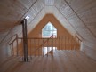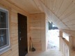 На фотографиях представлена баня со вторым светом 6х8 с террасой (плюс ещё один метр). Её нельзя назвать мансардной, так как второй этаж занимает лишь половину площади — вторая осталась незастроенной. Этот приём как раз и называется вторым светом. В итоге помещение первого этажа стало высокими и визуально более просторным.
