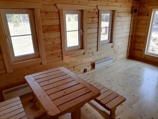 Окна мы устанавливаем настоящие деревянные стеклопакеты с фурнитурой как на пластиковых окнах, дерево используется клееное, повторюсь, не имитация деревянных стеклопакетов, а именно качественные окна.