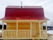 Из профилированного сухого бруса 9х14см, 14х14 см или 14х19 см. Сборка сруба в теплый угол на нагеля или гвозди 200 мм со сверлением отверстия в верхнем брусе (в зависимости от вида бруса).