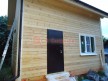 Из профилированного сухого бруса 9х14см, 14х14 см или 14х19 см. Сборка сруба в теплый угол на нагеля или гвозди 200 мм со сверлением отверстия в верхнем брусе (в зависимости от вида бруса).