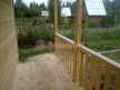 На террасе при условии что она есть делаем перила из строганной доски со всех сторон, столбы террасные также строганные, а не обрезки профилированного бруса с шипом и пазом. Домкратики на столбах для дальнейшей регулировки. Балясины будут сделаны аккуратно. Обратите внимание что в дешёвых случаях это может быть и будет просто вагонка прибирая к неотесанной доске снаружи и столбы будут не квадратные а просто профилированный брус как на видео.