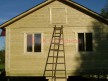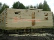 Из профилированного сухого бруса 9х14см, 14х14 см или 14х19 см. Сборка сруба в теплый угол на нагеля или гвозди 200 мм со сверлением отверстия в верхнем брусе (в зависимости от вида бруса).