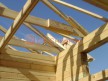 Из 9х14см, 14х14 см или 14х19 см. Сборка сруба в теплый угол на нагеля или гвозди 200 мм со сверлением отверстия в верхнем брусе (в зависимости от вида бруса).