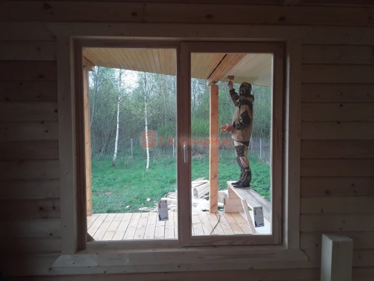 Окна мы устанавливаем настоящие деревянные стеклопакеты с фурнитурой как на пластиковых окнах, дерево используется клееное, повторюсь, не имитация деревянных стеклопакетов, а именно качественные окна.