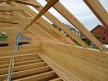 Практически все строительные компании, ориентирующиеся на средний класс, закупаются на одной базе. Мы же делаем брус самостоятельно. Наша фишка — удлинённый наплыв по бокам бруска. При сборке сруба наплыв верхнего венца закрывает нижний на 2-3 см. Этого хватает, чтобы обеспечить герметичное соединение и предотвратить появление межвенцовых щелей во время усадки. Это очень важно при бюджетном строительстве из бруса естественной влажности, который без вариантов даст высокую степень усадки.