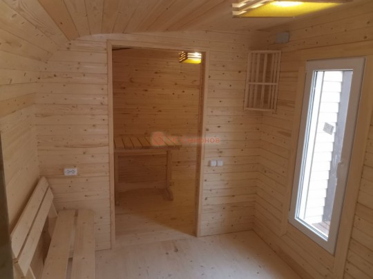 Для строительства аккуратной бани 6х6 метров СК Смирнов разработал проект №149 с обустроенной парной и комнатой отдыха. По планировке общая площадь составляет 24 квадратных метров. Мы строим бани под ключ с полной отделкой снаружи и внутри.